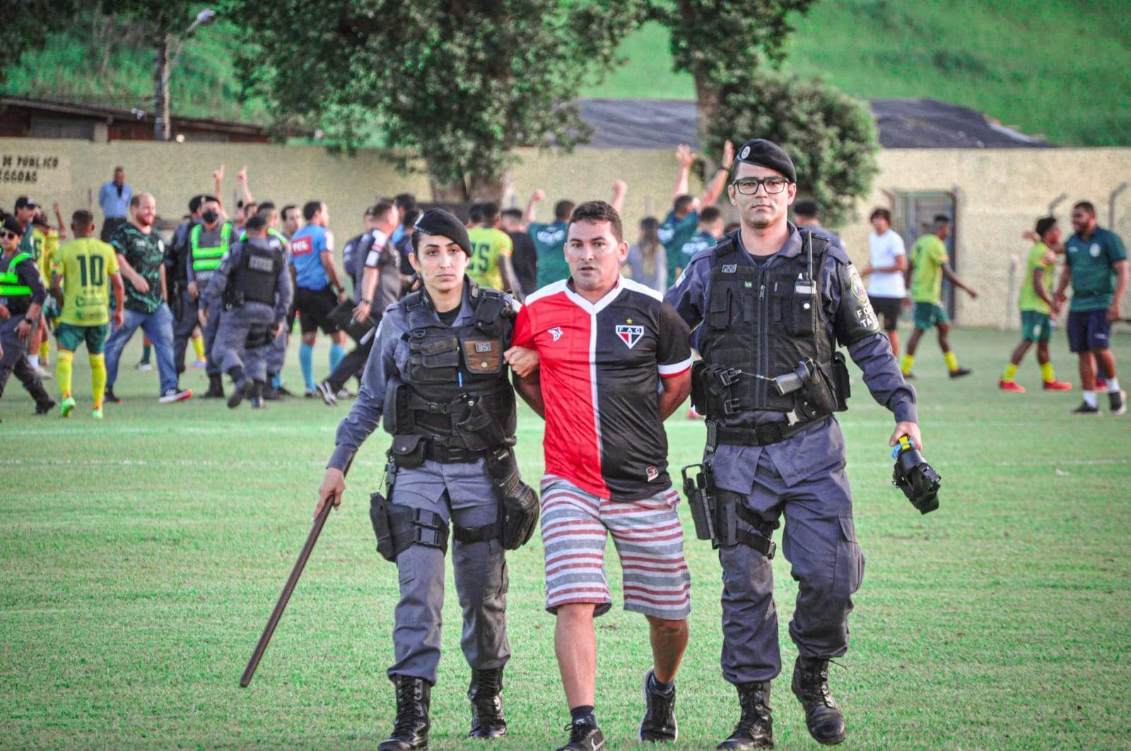 A Polícia Militar, que fazia a segurança na partida, imobilizou o torcedor e o conduziu para a delegacia, onde foi autuado.