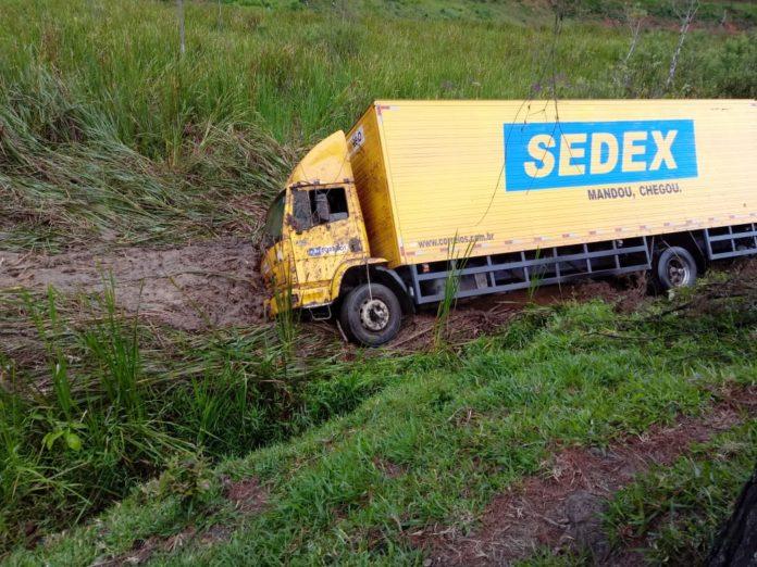 Um caminhão do Correios saiu da pista na ES 164 na tarde desta quinta-feira (27) na comunidade de Castelinho, em Vargem Alta.