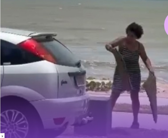 Neste domingo (15), uma mulher foi flagrada catando grama na Orla de Piuma, ES, sem se intimidar com filmagens.”